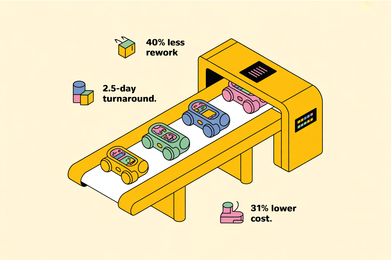 Case study: A mid-size Indian toy exporter reduced turnaround time from 6 days to 2.5 days and cut print cost per toy by 31%.